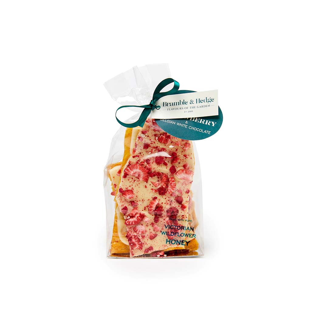 Bramble & Hedge hand made Honeycomb comes in a range of delightful flavours. Hand decorated with gorgeous fruits and flowers they make a stunning gift, sit beautifully in a hamper and are also perfect for indulging yourself with a delicious crunchy treat. These Bramble and Hedge Honeycomb 200g packs are seriously tasty and with flavours such as Apple Snow, Plum Dust with Strawberry it is hard to choose. *May contain Traces of Nuts, Gluten & Dairy