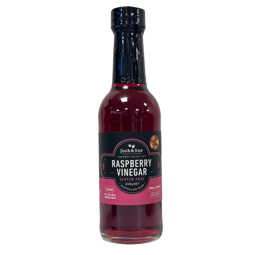 Josh & Sue's Raspberry vinegar is a great condiment to have around the house making a great base for salad dressings. This fruity raspberry vinegar is delicious drizzled over salads, steam vegetables or Asian greens. Add a dash to sparkling mineral water for a refreshing drink. Add to sweet and sour dishes for a delicious zing. Marinate berries or pour over ice cream, Our Raspberry Vinegar can be used as you would use a Balsamic. Yum! Gluten Free, Vegan